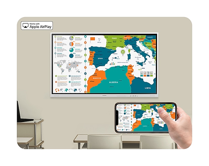 Interactive Pro is integrated with AirPlay 2, allowing educators and students to present on the big screen, increasing visibility and engagement in larger spaces. Creating a wireless dual display setup ensures no student misses out on important information for collaborative interactions.
