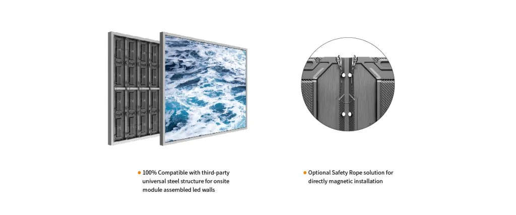 Achieve lightning-fast installations using our magnetic setup approach. Craft displays with unparalleled ease and efficiency, ideal for screens up to 30㎡ in size and under 4m in height.